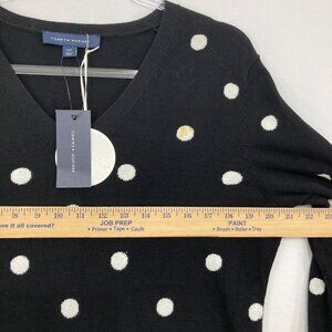 New Tommy Hilfiger Large Black White Polka Dot Crew Neck Light Knit Sweater