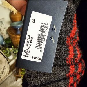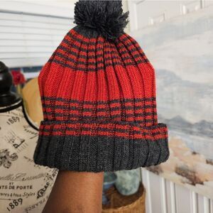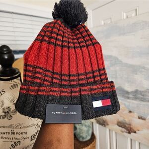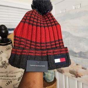 New Tommy Hilfiger Red & Grey Striped Beanie Hat
