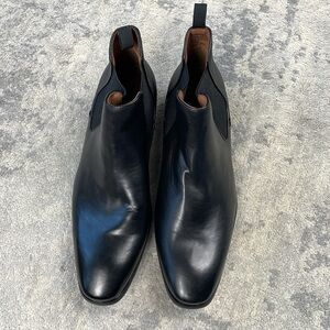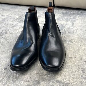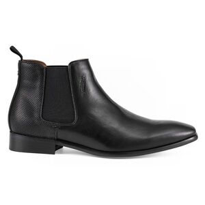 Synthetic leather upper in a chelsea boot style with a tapered toe