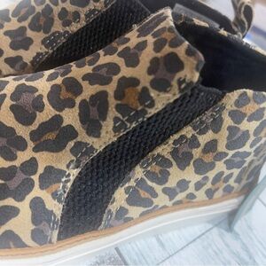New Toms Bryce Mid Top Suede Sneaker Tan Leopard Animal Print Slip On Wo…