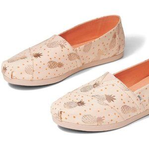 New Toms PEACH ROSE GOLD PINEAPPLE Slip-On Alpargatas Walking Shoe 8 Orig$80+Tax