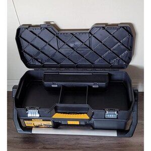 The 24-Inch Tote with Removable Power Tools Case has a top case with an integrated carry handle for power tools and small parts. It has a long metal carry handle for easy grip and carrying of the tote.