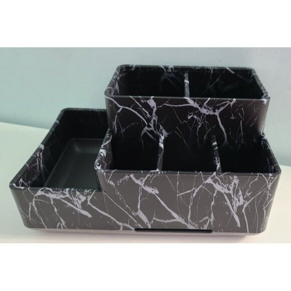 Bathroom Organizer: The organizer is made of high-quality ABS material and divided into 5 compartments. It can hold your Beard care equipment, dental care products, toothbrushes, toothpaste, hair accessories, facial cleansers, creams, etc.