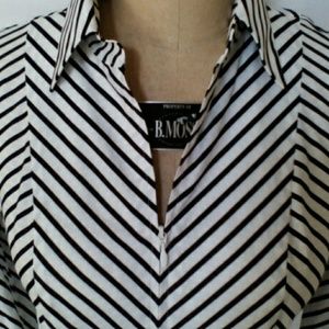 Black and White Striped Top, will go great with a pair of black jeans. Zips from the top or bottom.