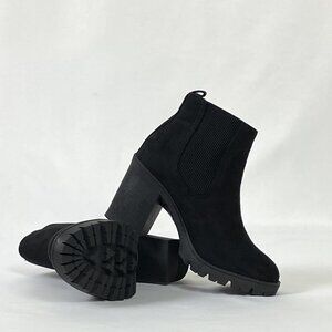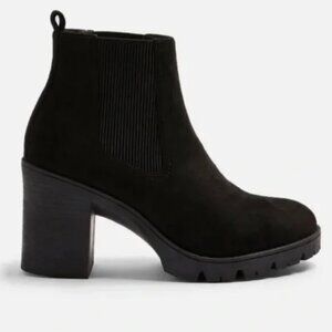 New Topshop Byron Faux Suede and Textile, Pull-On Lug Sole and Chunky Block Heel Chelsea Unit Boot. Black. 6.5 / 37