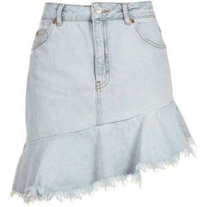 New Topshop Moto Asymmetrical Raw Hem Denim Skirt Light Wash Womens Size 6
