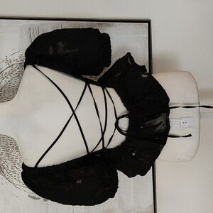 Cute and elegant party top, sheer puff sleeves and waist below.