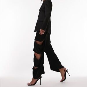 New Topshop Slash Wide Leg Cutout Satin Pants In Black Limited Edition Sz 6