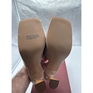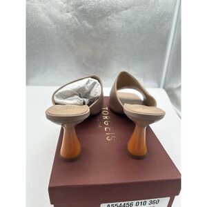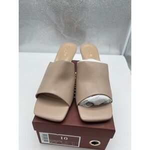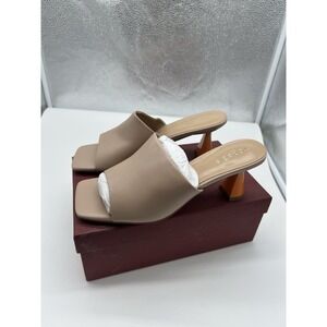 New Torgeis Scarlette Faux Leather Triangle Heel Slip On Sandal Beige Size 10