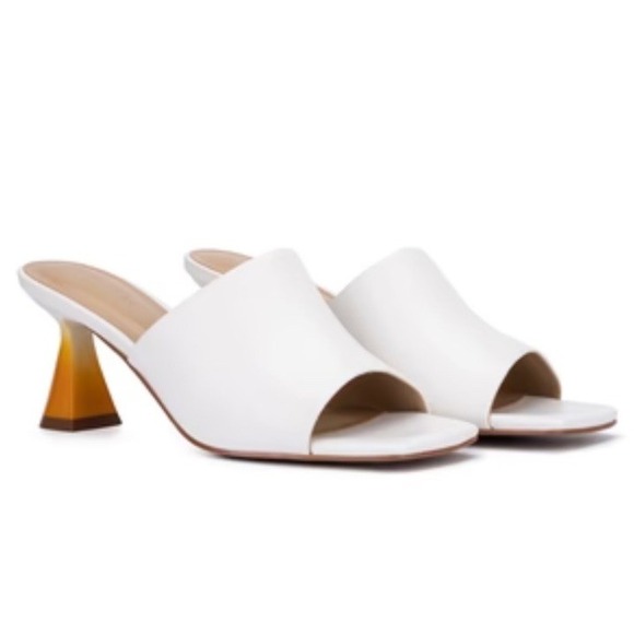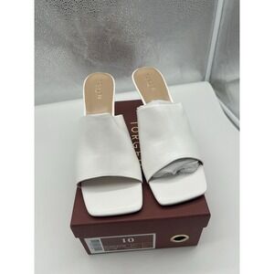 New Torgeis Scarlette Faux Leather Triangle Heel Slip On Sandals White Size 10