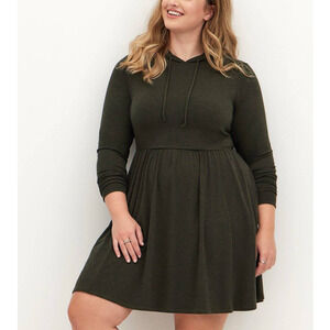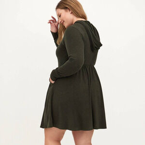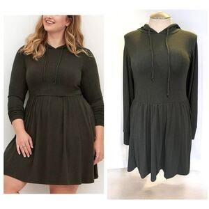 New Torrid 1 (1X 14/16) Super Soft Olive Green Hooded Hoodie Skater Mini Dress