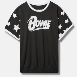 New Torrid 1X David Bowie star print ringer tee, black & white