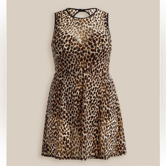 New! Torrid 3 Leopard Cheetah Mesh Swim Bathing Suit Dress 3X