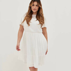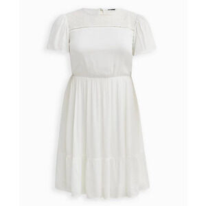 New Torrid 4 (4X 26) White Flutter Sleeve Gauze & Eyelet Lace Skater Dress