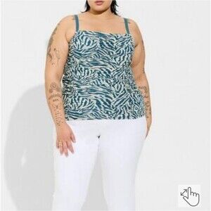 New Torrid Blue Zebra Stretch Mesh Cropped Shirred Floral Tank 2 2X