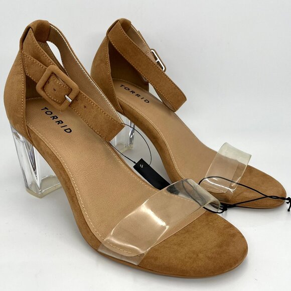 New with Tags Torrid Brown Heel with translucent strap and heel. Size 8 Wide Width.