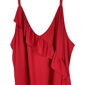New Torrid Cami Top Red Georgette Asymmetrical Ruffle Women's 5 5X 28