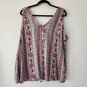 New Torrid Challis Stitch Vintage Striped Florals pink tank womens 2 2X 18-20