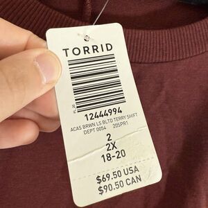 New Torrid Dress Women's 2 2X Red Long Sleeve Belted Pocketless Cotton Blend