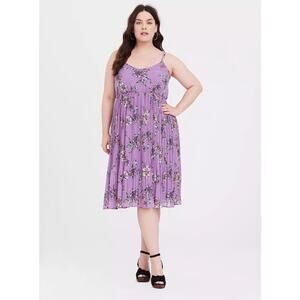 New Torrid Lavender Purple Floral Chiffon Midi Dress Adjustable Strap Plus Sz 2X