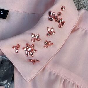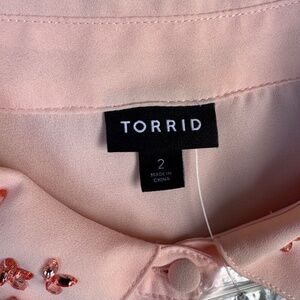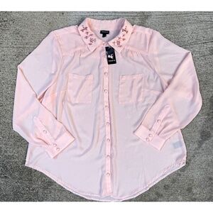 New Torrid Madison Blush Peach Pink Rhinestone Collar Button Up Top