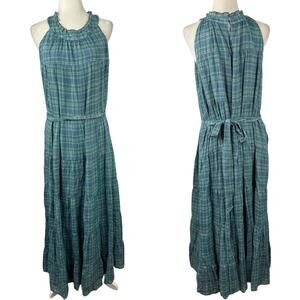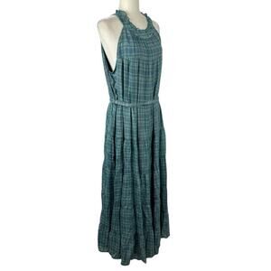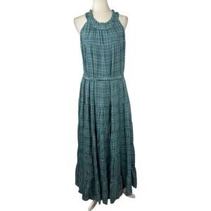 New Torrid Maxi Lindsay Hi Neck Blue Plaid Tiered Long Dress Size 2X Sleeveless