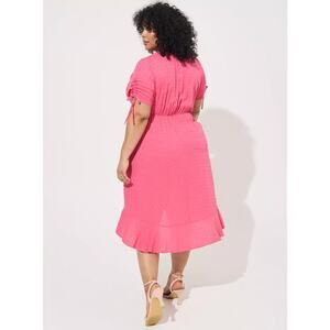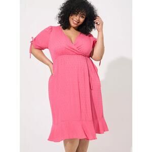 New Torrid Midi Swiss Dot Surplice Dress Pink Swiss Dot Short Sleeve Sz 2X
