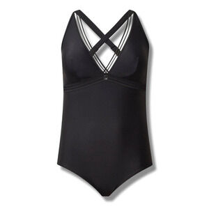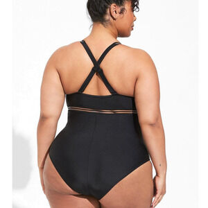 New Torrid Plus Size 6 Black Mesh Trim Busty Padded One Piece Wireless Swimsuit