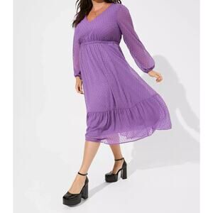 New Torrid Purple Clip Dot Chiffon Midi Dress Women's 2X /18-20 Plus Whimsygoth