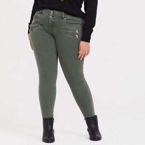 New Torrid Super Stretch Jegging 20R 20 R Olive Green Soft Multi Zip Moto Pants