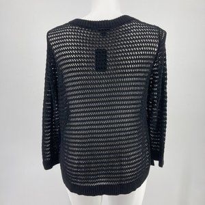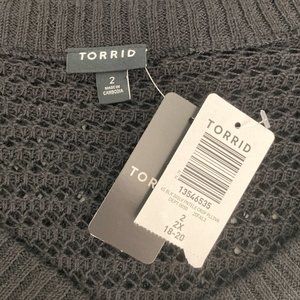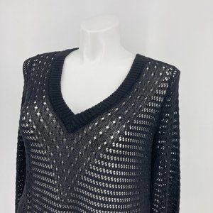 New Torrid Sweater Black Open Stitch Pointelle V Neck Crop Pullover Size 2