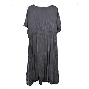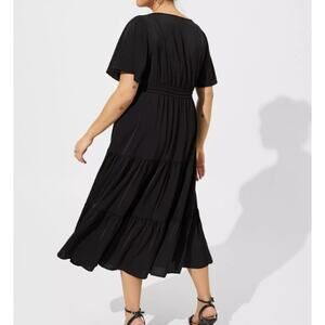 New Torrid Womens 3X Dress Tea Length Studio Crepe De Chine Tie Neck Tiered Midi Plus Size