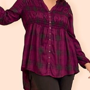 New Torrid rayon plum plaid tunic top Sz.00
