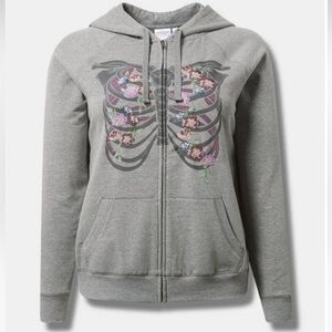 New! Torrid sz 3 Rib Skeleton Floral Super Soft Fleece Hoodie Sweater 3X