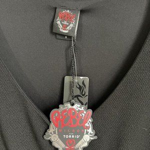 New Torrid x Rebel Wilson 3 Black Embellished Faux Wrap Dress