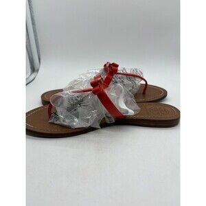 Step out in style with these Tory Burch Bow Thong Sandals in vibrant red patent leather. Featuring a flat sole and a chic bow accent on the thong strap, these sandals offer both comfort and a touch of designer flair.