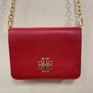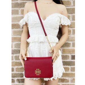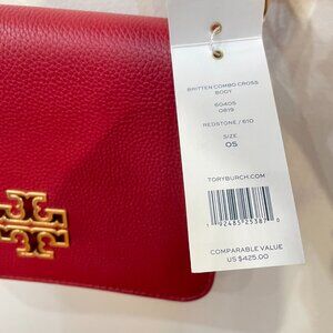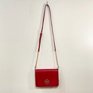 New Tory Burch Britten Leather Convertible Bag Redstone $425