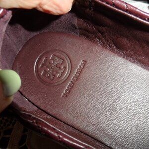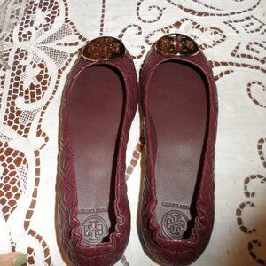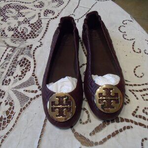 New Tory Burch Burgundy/Wine "Quinn" Quilted Calf Leather Ballet Flats Size 8M