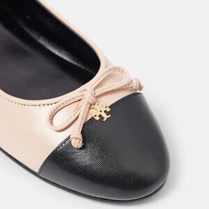 New Without Tag Tory Burch Embellished Leather Cap Toe Ballet Flats