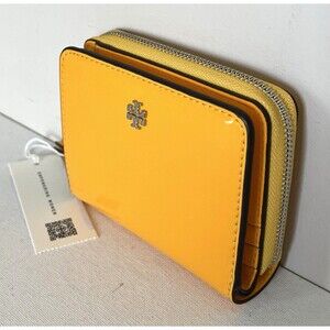 New Tory Burch Emerson Mini Patent Leather Wallet Bright Squash