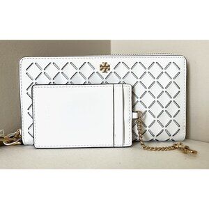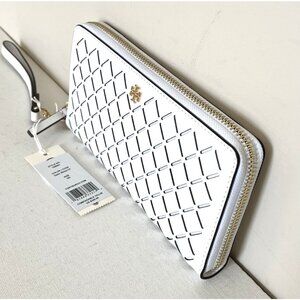 New Tory Burch Emerson Perforated Patent Leather Continental Wallet &Card Holder