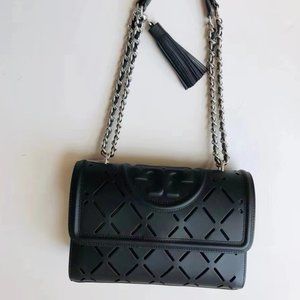 New Tory Burch Fleming Cutout Black Shoulder Bag