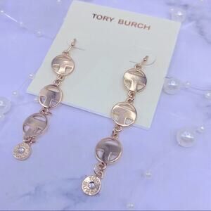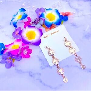 New Tory Burch Gold Round Drop T French Wire Dangle Earrings