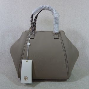 New Tory Burch Half-Moon Gray Leather Small Satchel/Shoulder/Crossbody Bag AUTH