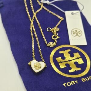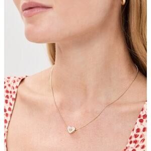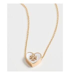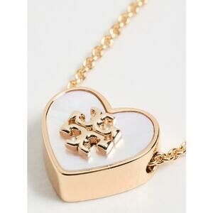 Elegant heart-shaped pendant. Features iconic logo. Delicate gold chain.