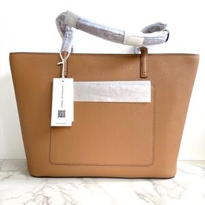 Tags: Tory Burch tote ; leather tote , Tory Burch caramel tote; tan handbag ; spring ; summer ; fall ; fashion ; designer handbag ; luxury ; travel bag ; travel tote ; brown handbag , neutral handbag , work tote