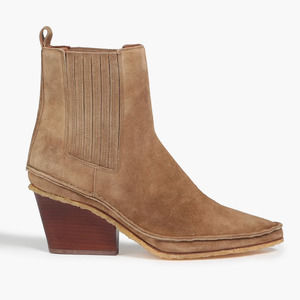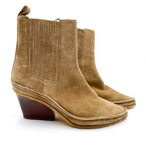 New Tory Burch Lila Booties Brown Suede Pointed Stacked Block Heel Ankle Sz 6