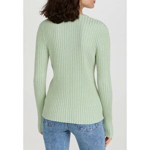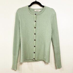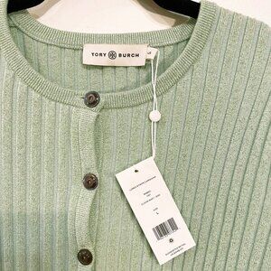 New Tory Burch Metallic Stripe Merino Wool Ribbed Cardigan Mint Green Large $448