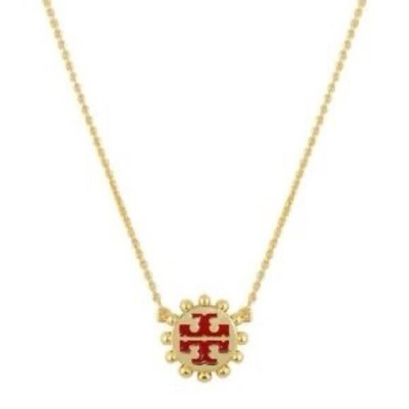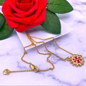 New Tory Burch Red Logo, Gold Adjustable Necklace