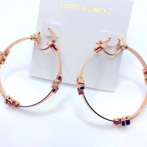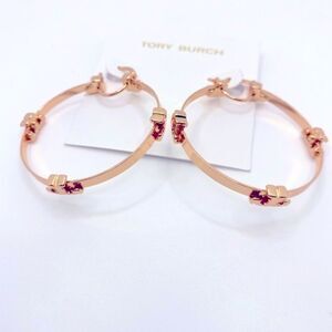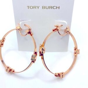 New Tory Burch Rose Gold Logo Light Weight Hoop Earings